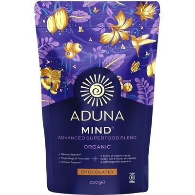Aduna, Bio Mind Advanced Superfood, Myseľ, 250 g Adaptogény ashwagandha a schisandra a nootropiká reishi a lion's mane zvládajú zdravú stresovú reakciu, zatiaľ čo kakaový...